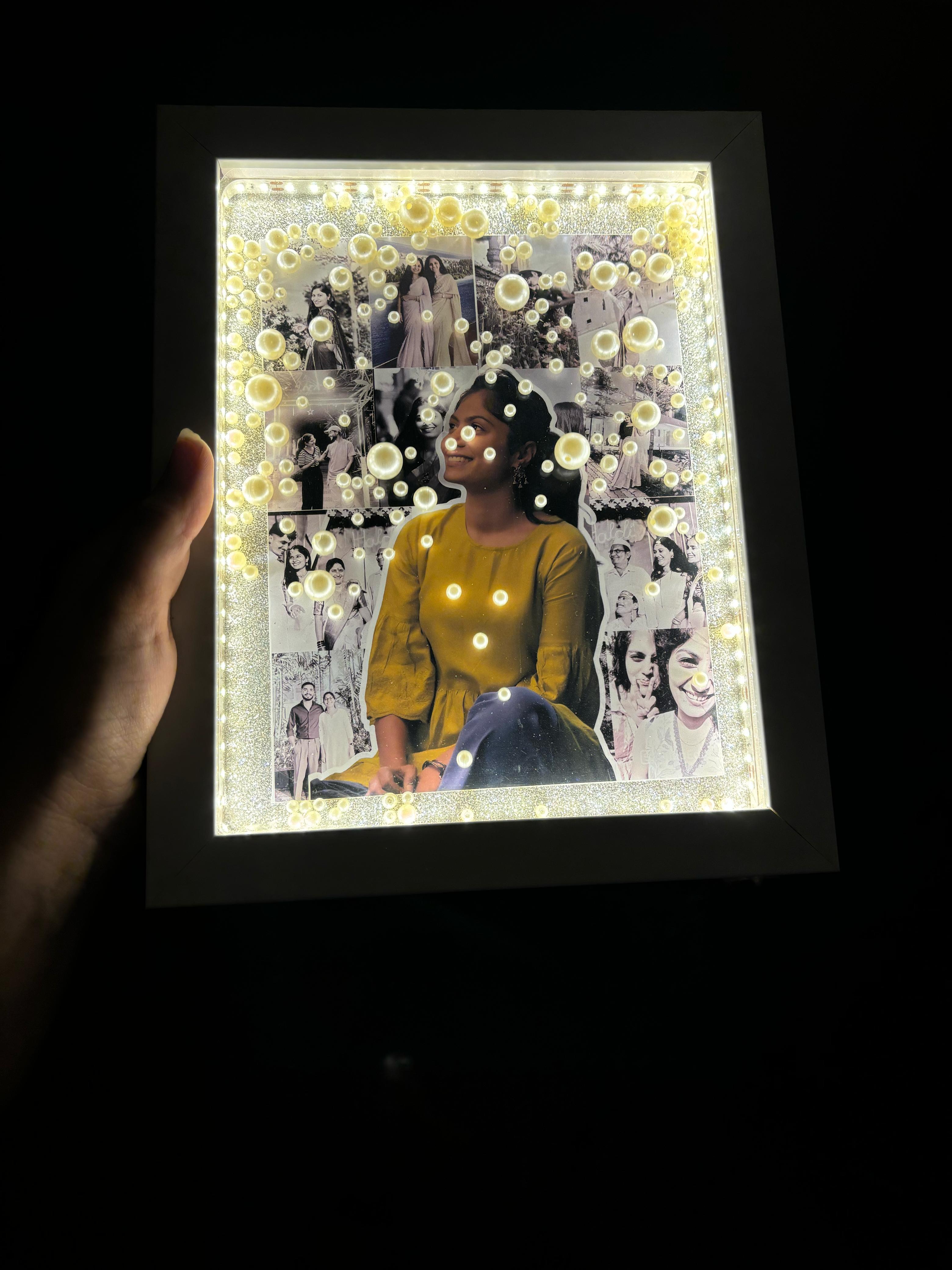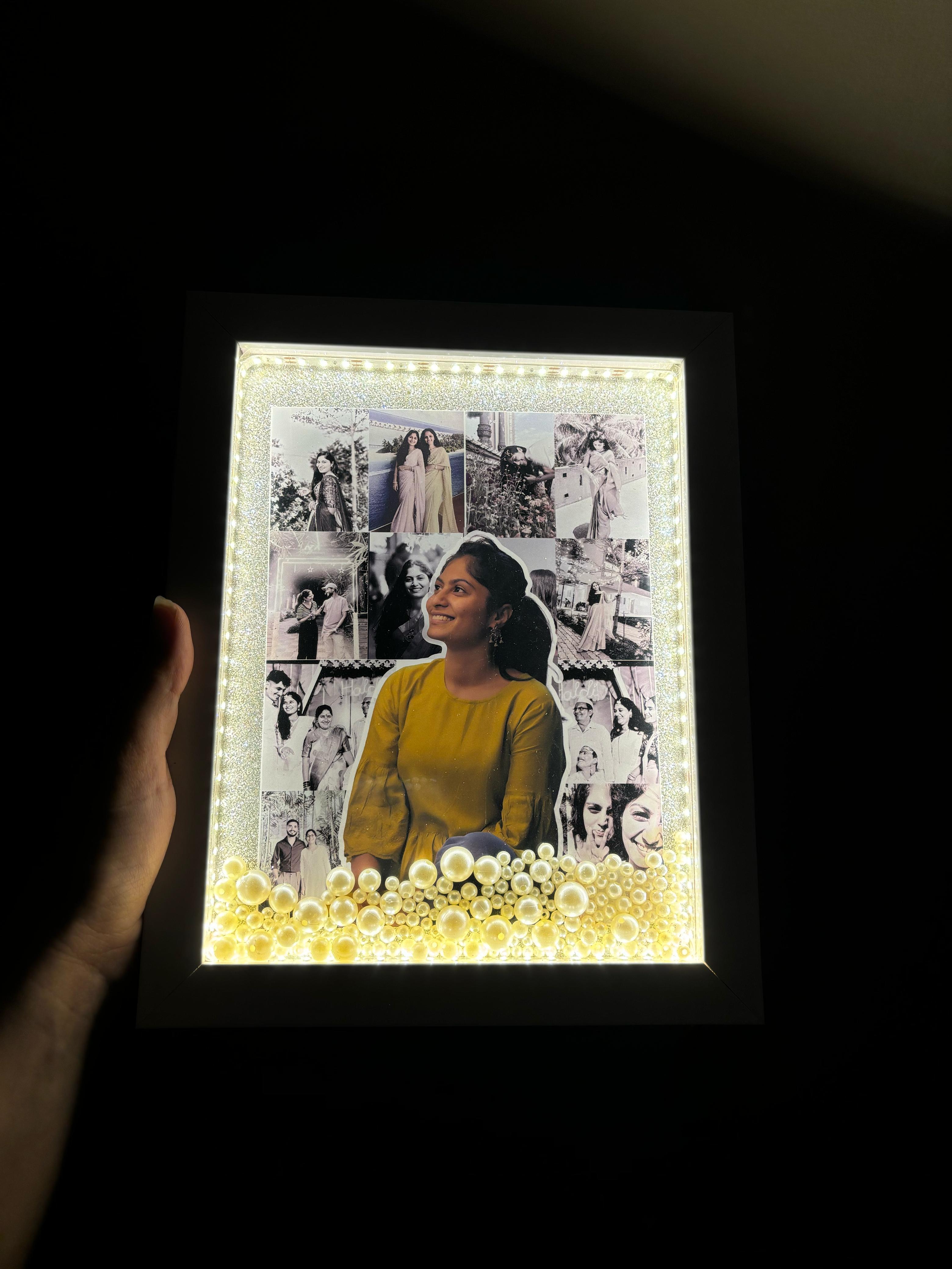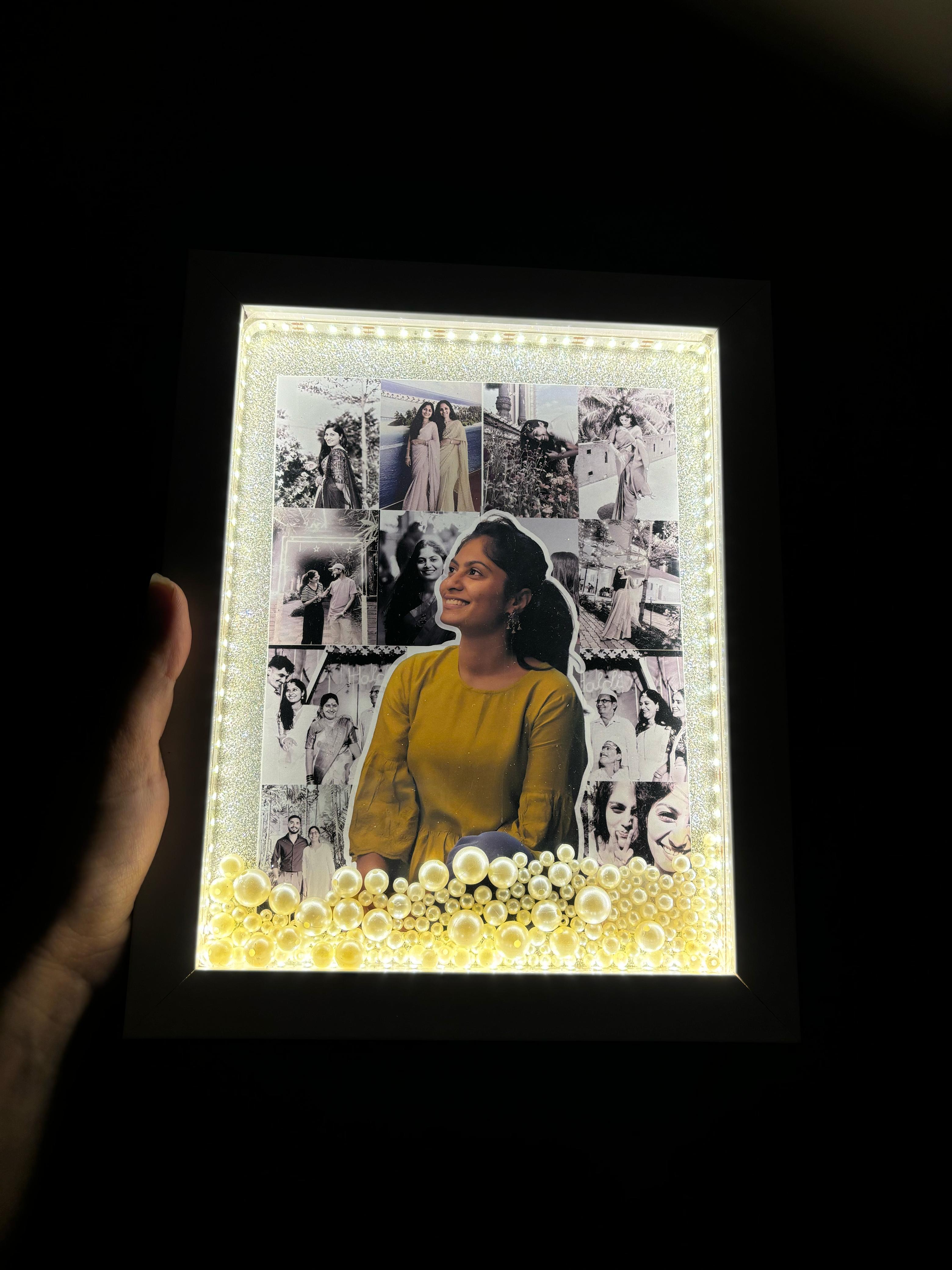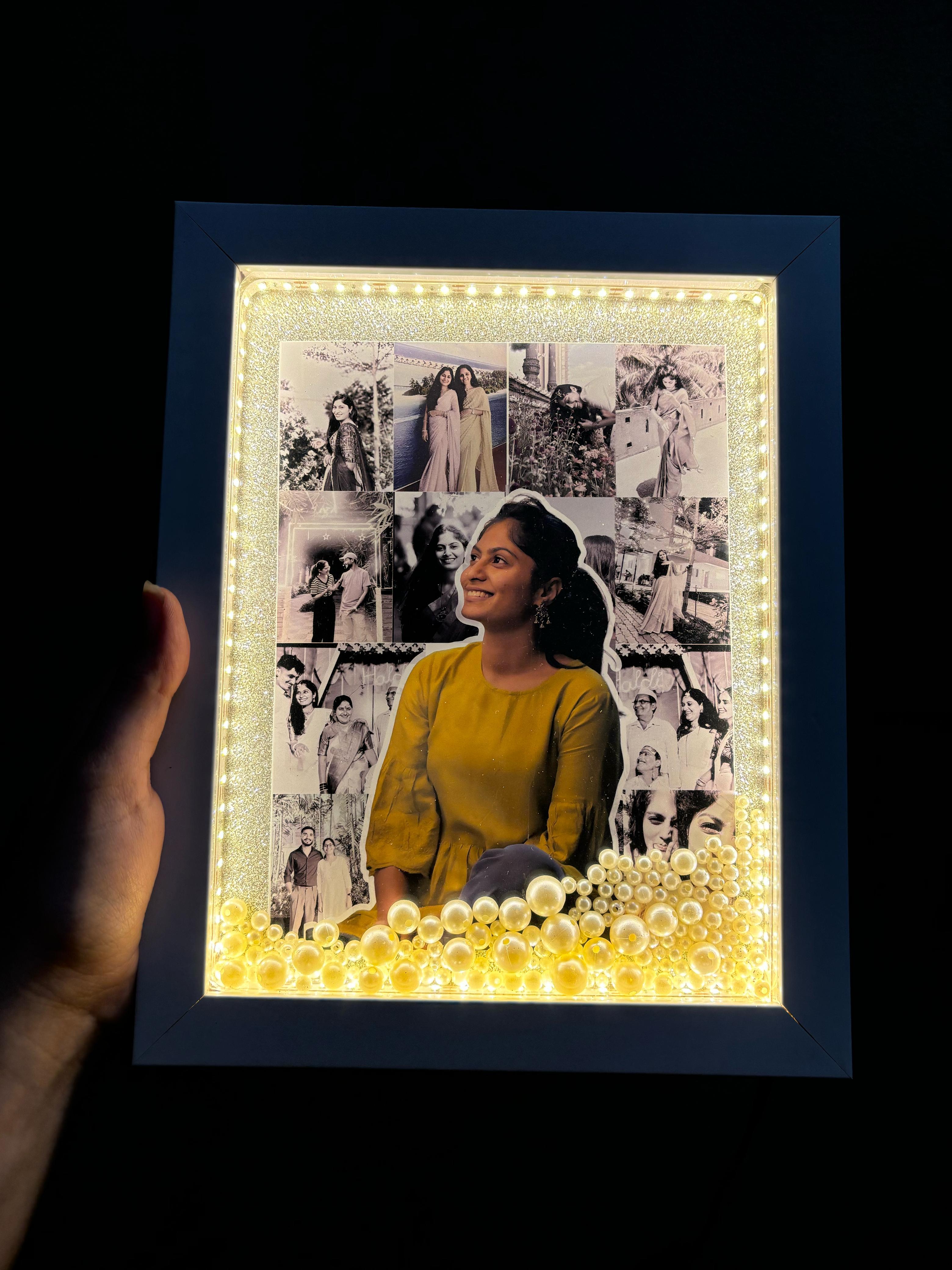 Premium LED Shadow Frame with Pearls – Custom Photo Collage Gift with Warm Lights