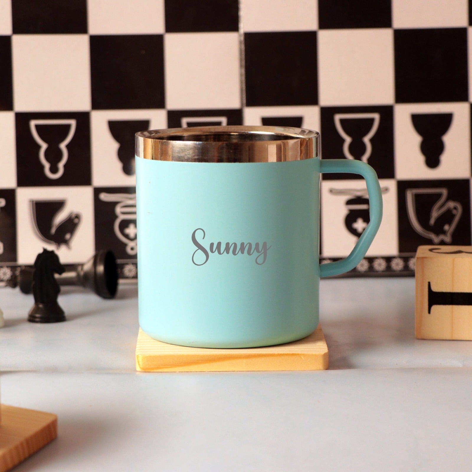 1. Customized Name: Make every sip uniquely yours by adding a personalized touch with your name. The elegantly engraved name on the steel mug ensures that your drinkware is distinctly yours, making it a thoughtful and stylish addition to your collection.