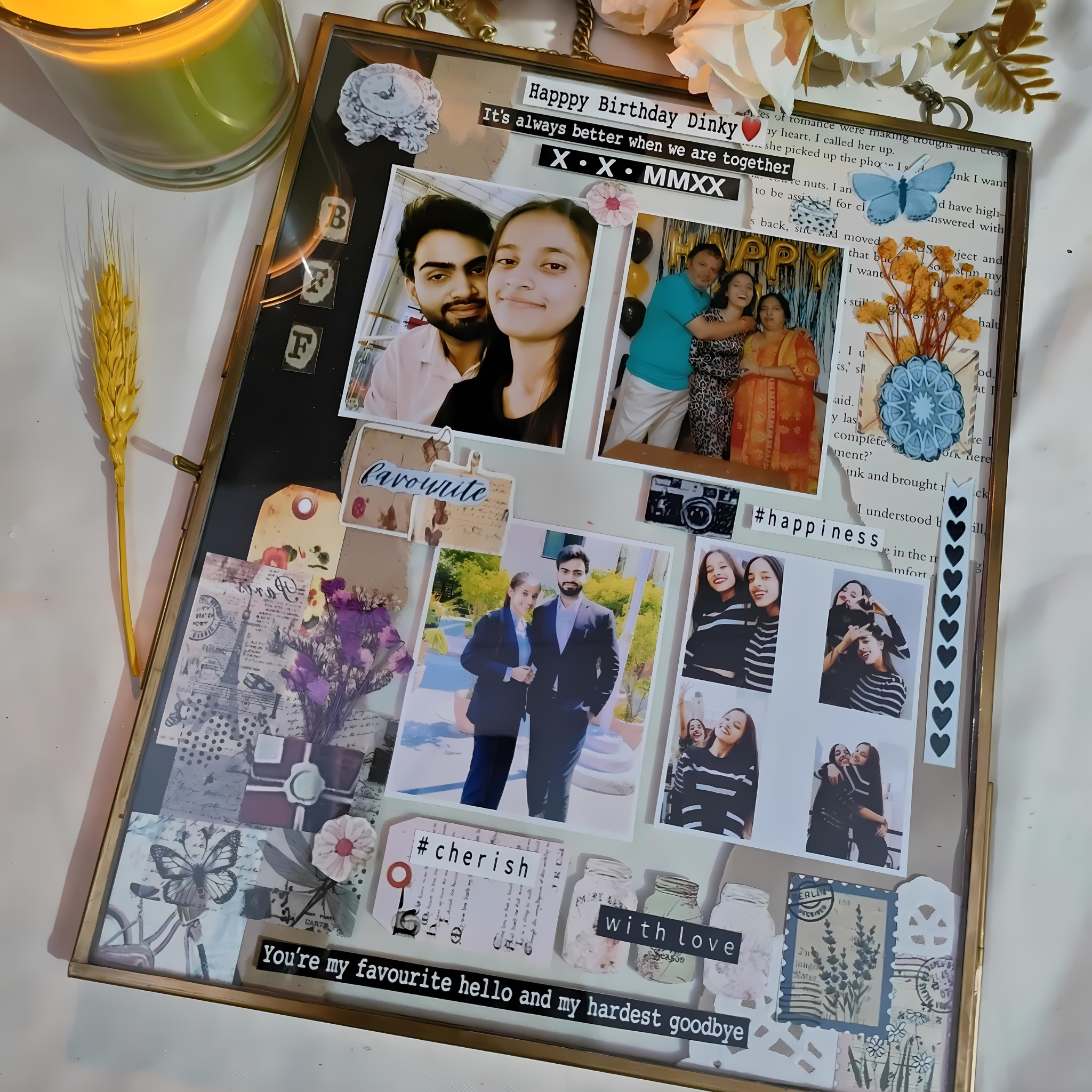 Captivating Captions: Enhance the personal touch by including3 to 4 captions that narrate the story behind each photo. Share your sentiments and make the frame a narrative of your unique love journey.