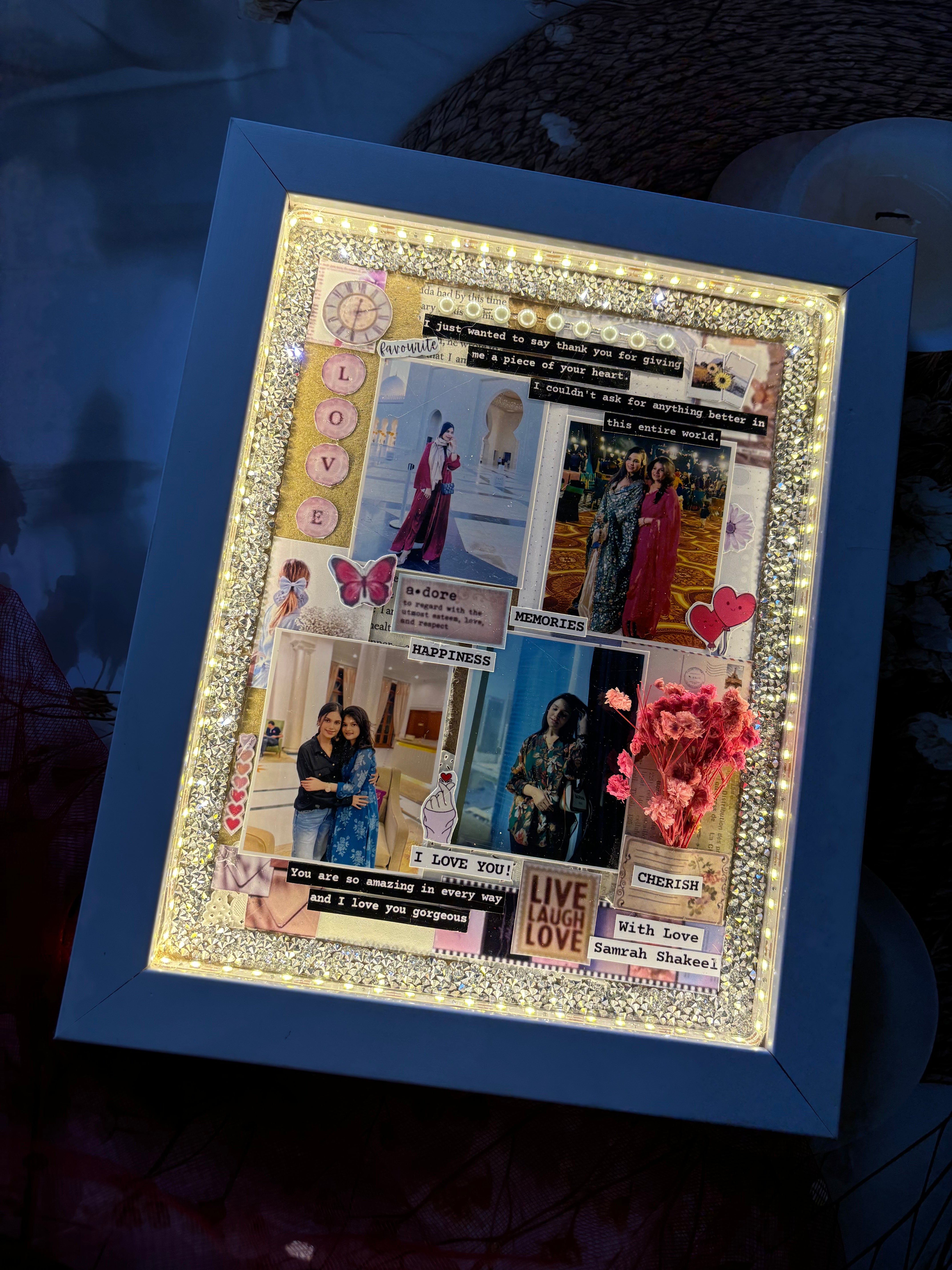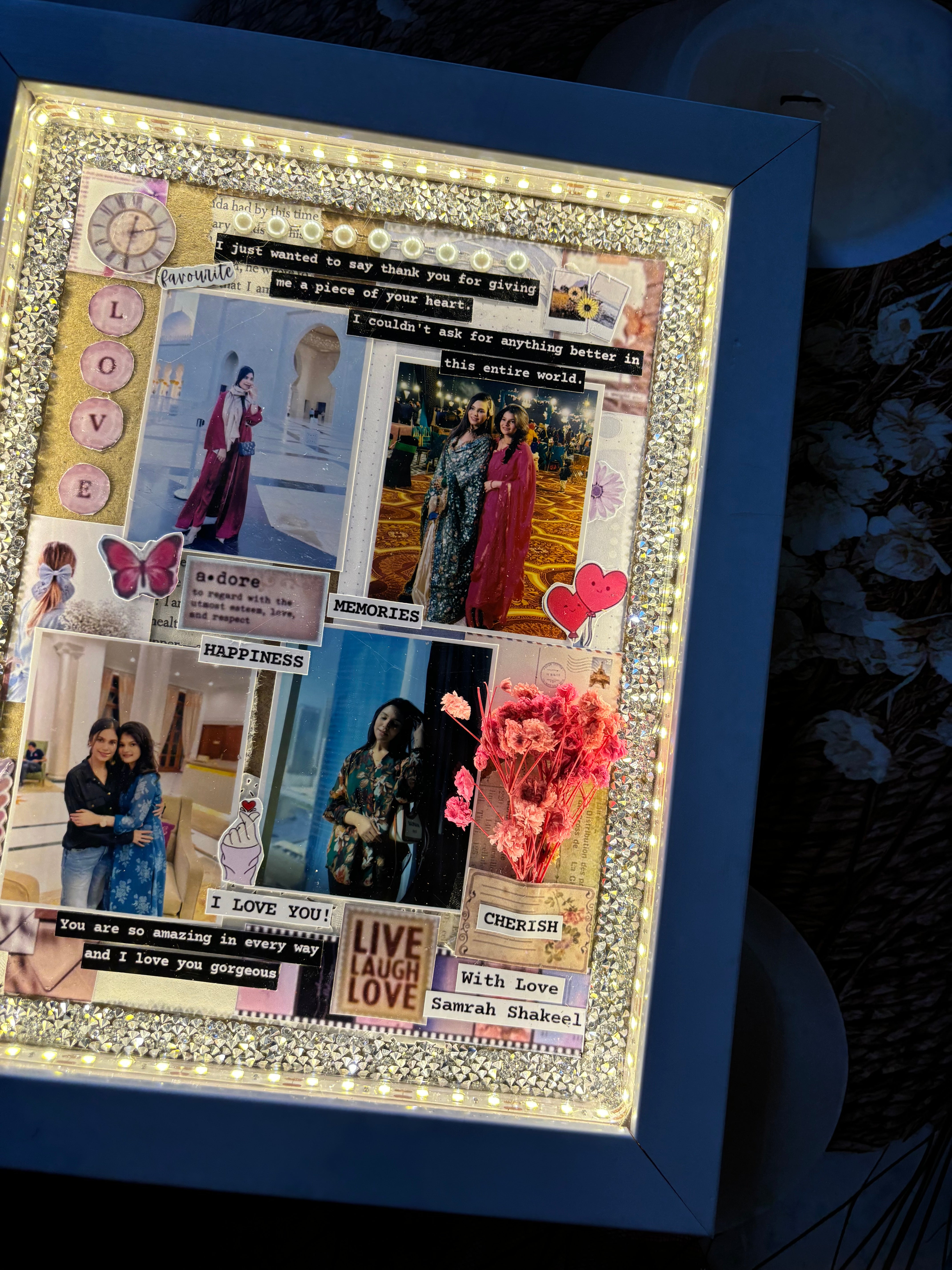 Premium LED Shadow Frame with Pearls – Custom Photo Collage Gift with Warm Lights