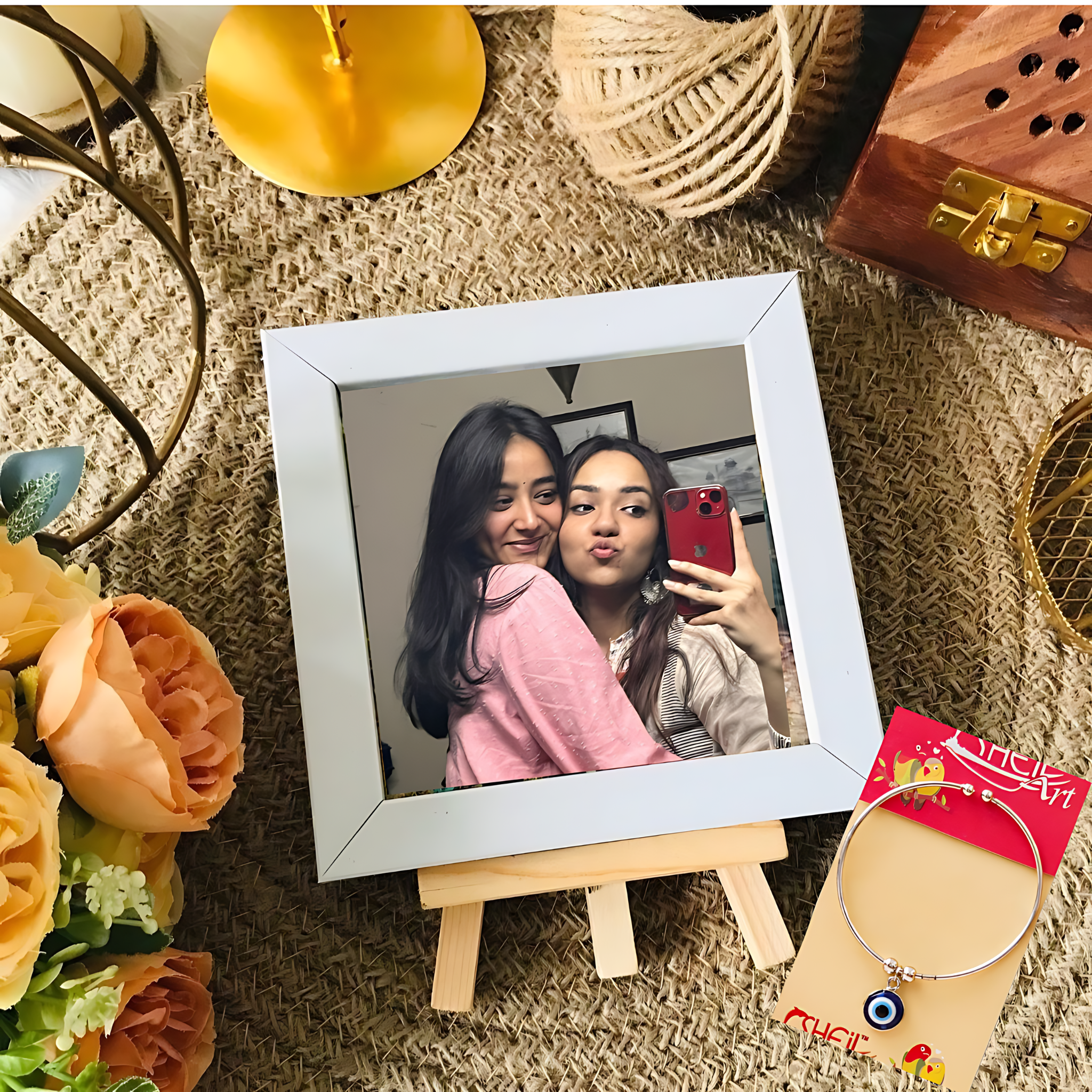 Mini White Frame With One Evil Eye Bracelet Combo | Size 4 X 4 Inch