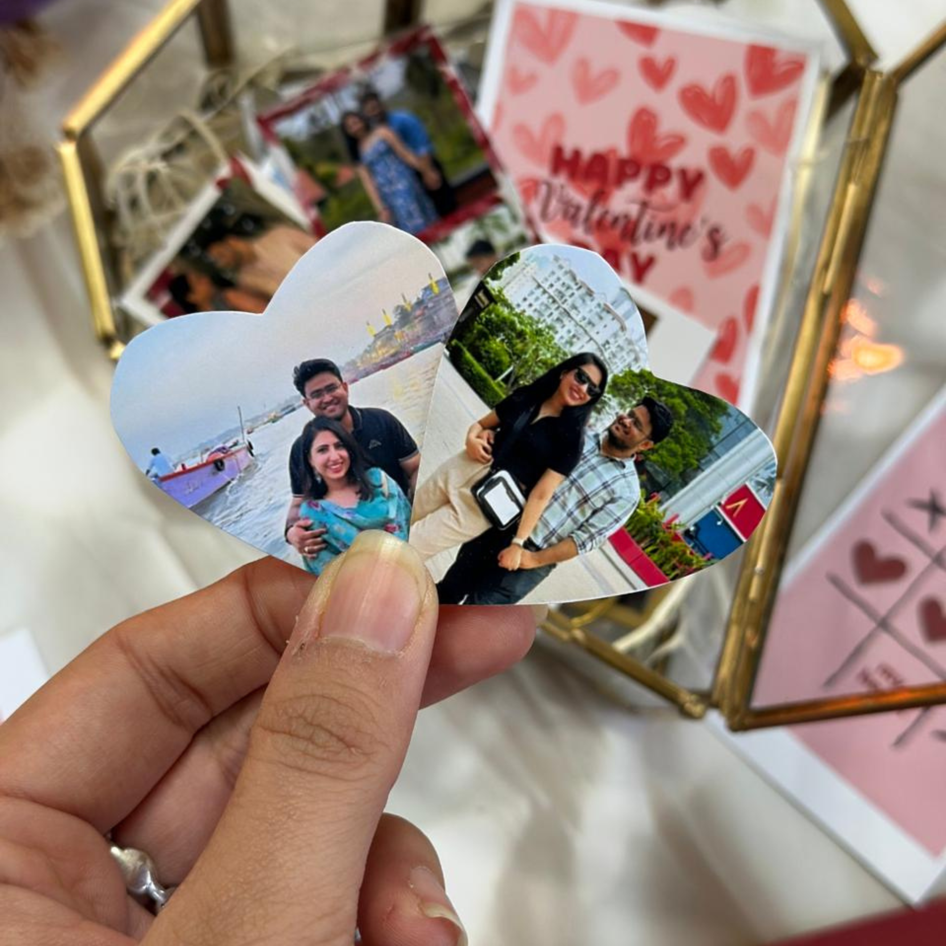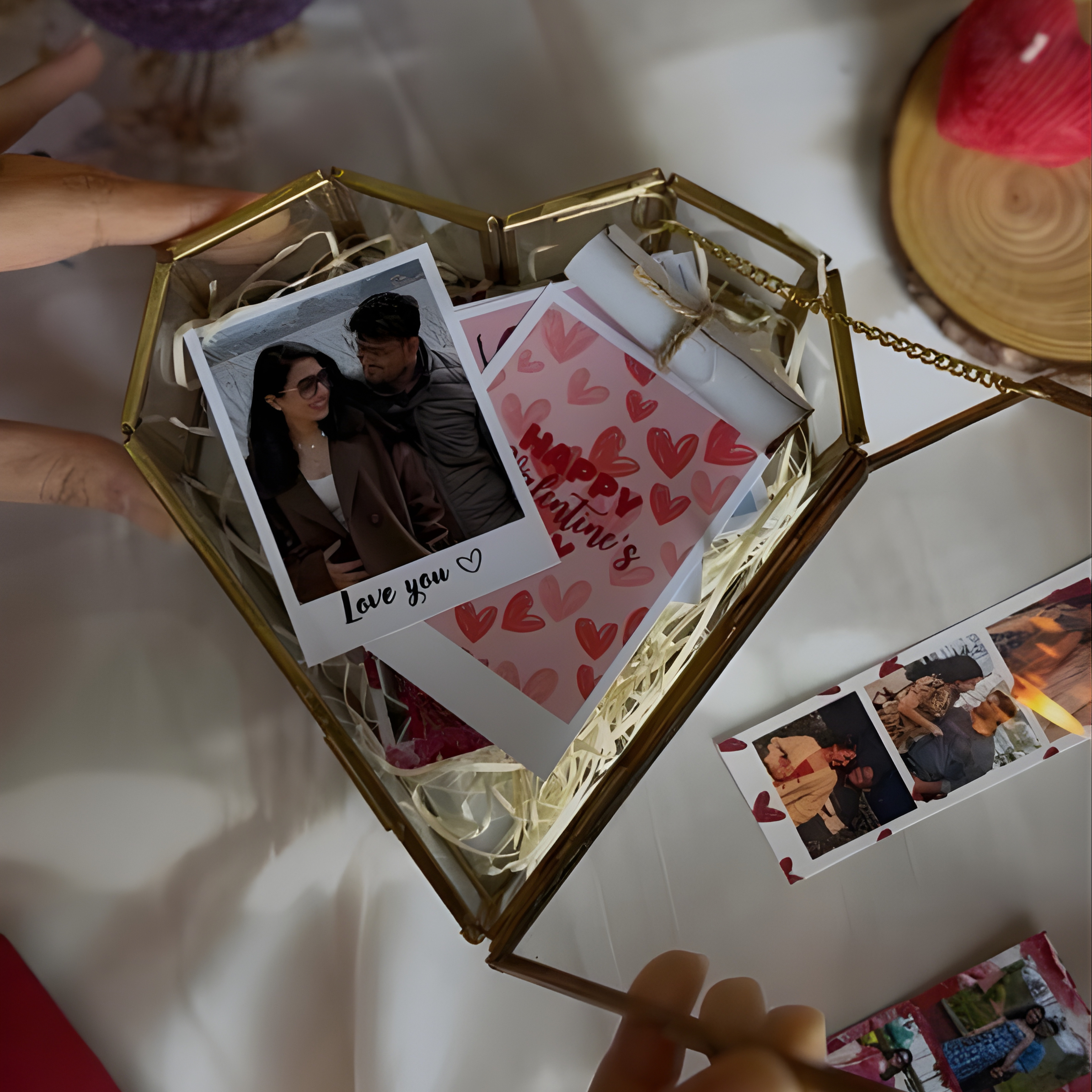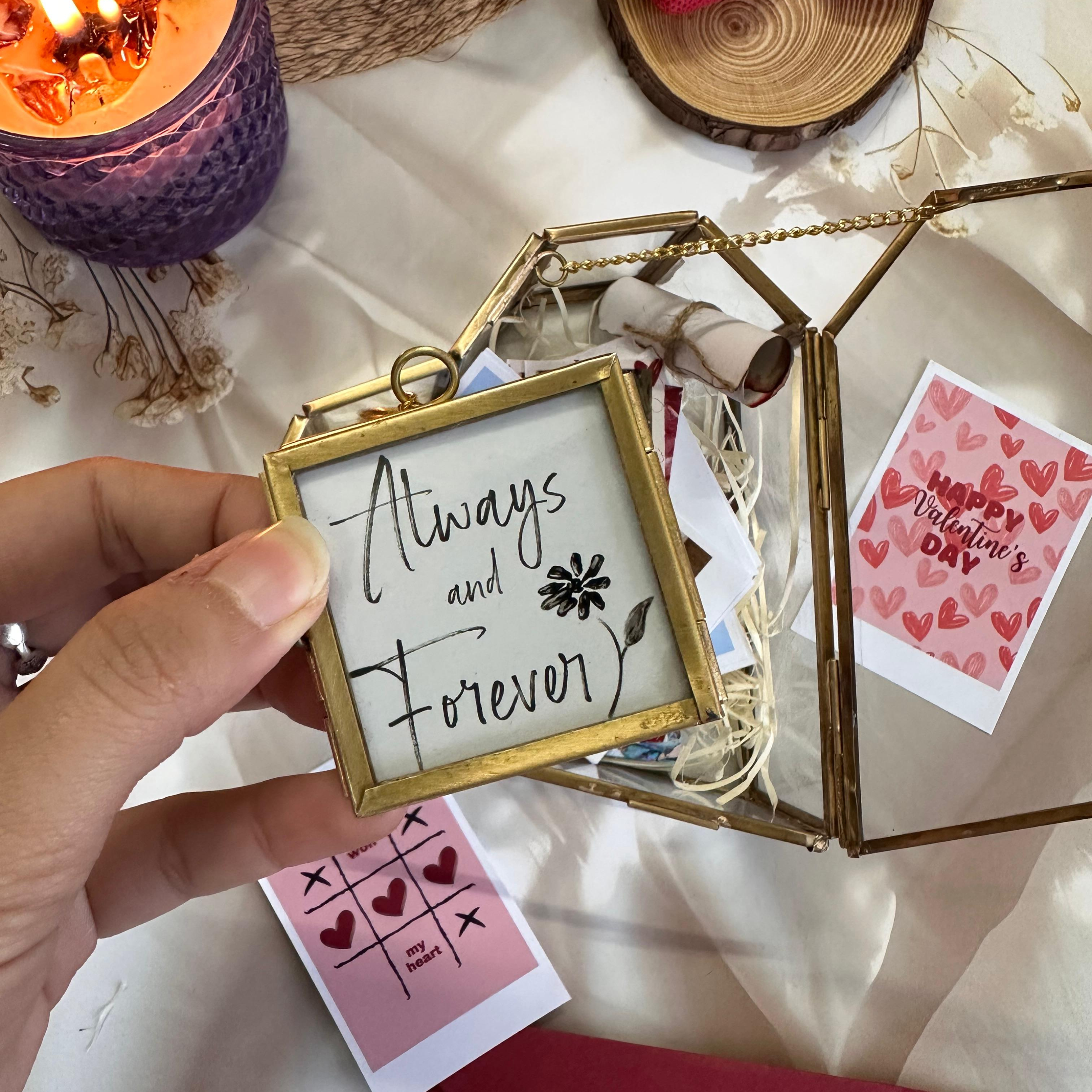 Forever in a Heart is a beautifully curated Valentine hamper designed to hold emotions, moments, and memories — all preserved inside an elegant heart-shaped glass box. From photos to love notes, every element comes together to create a keepsake they’ll open again and again.