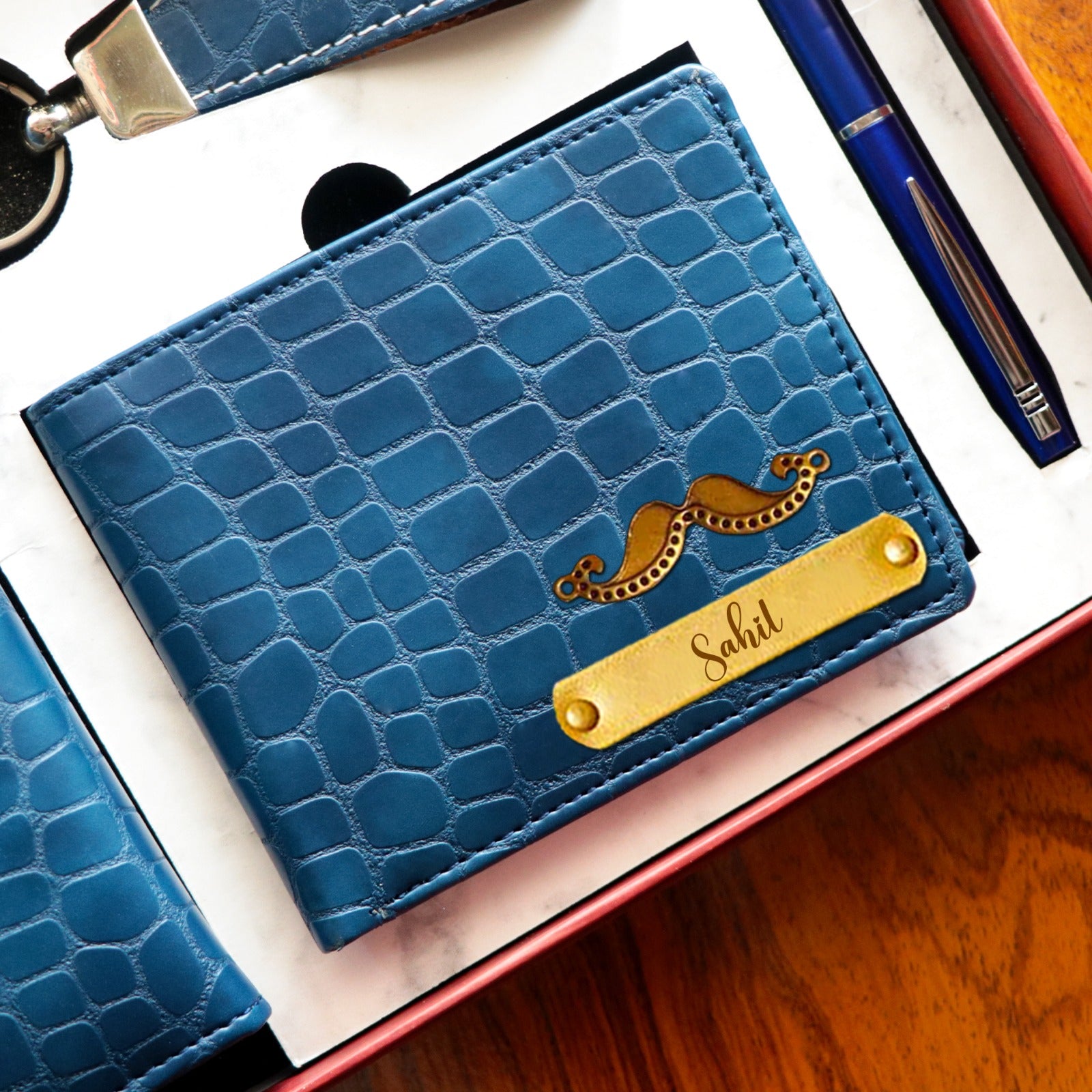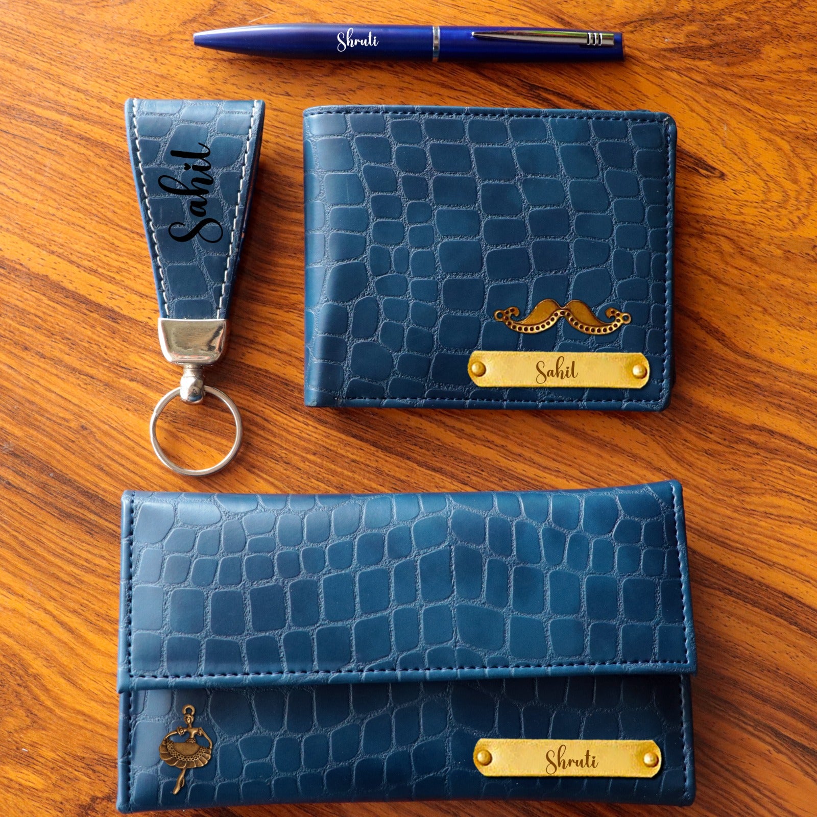 Personalised Leather Accessories Combo Set for Couple with Premium Kappa Box