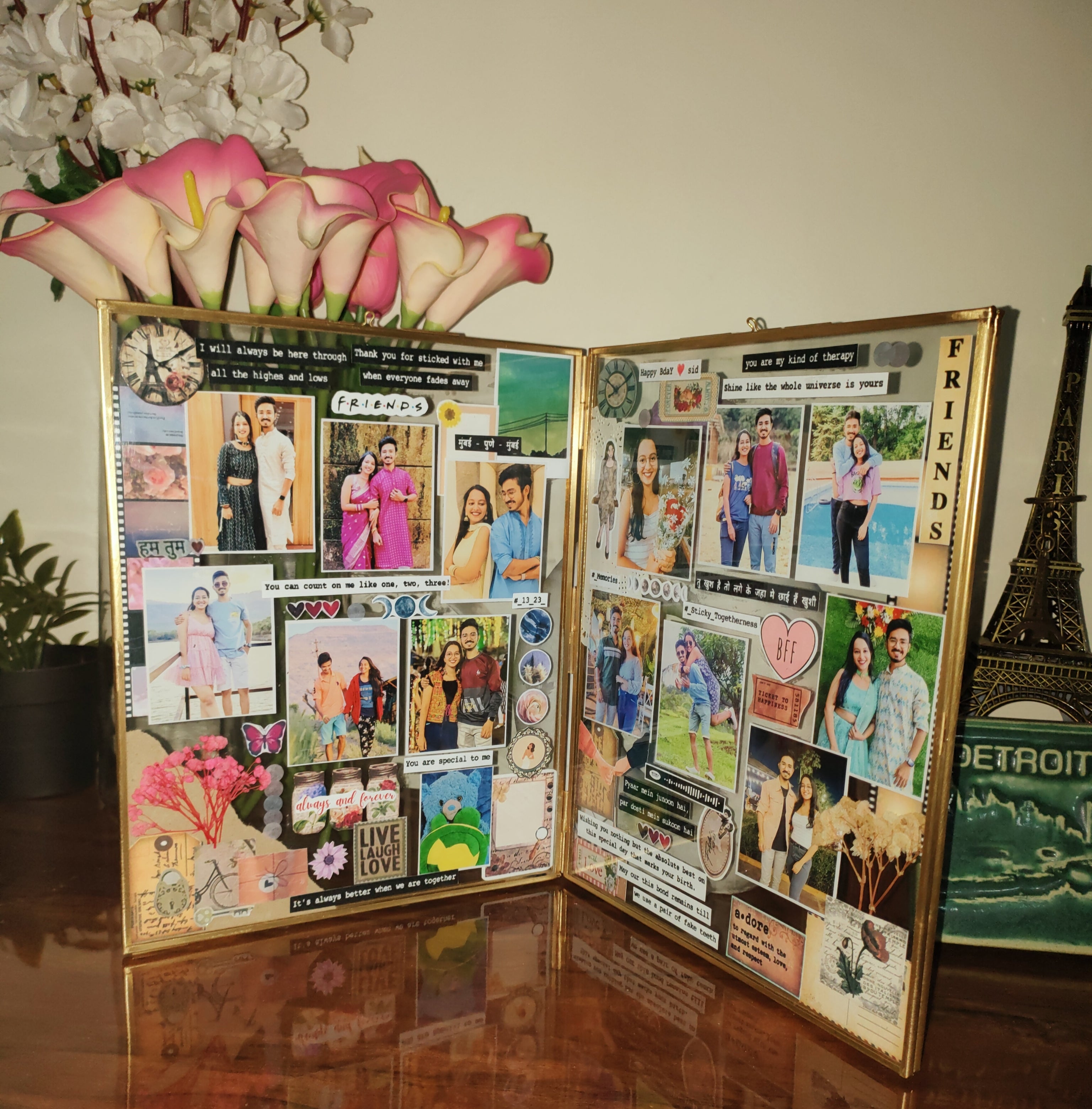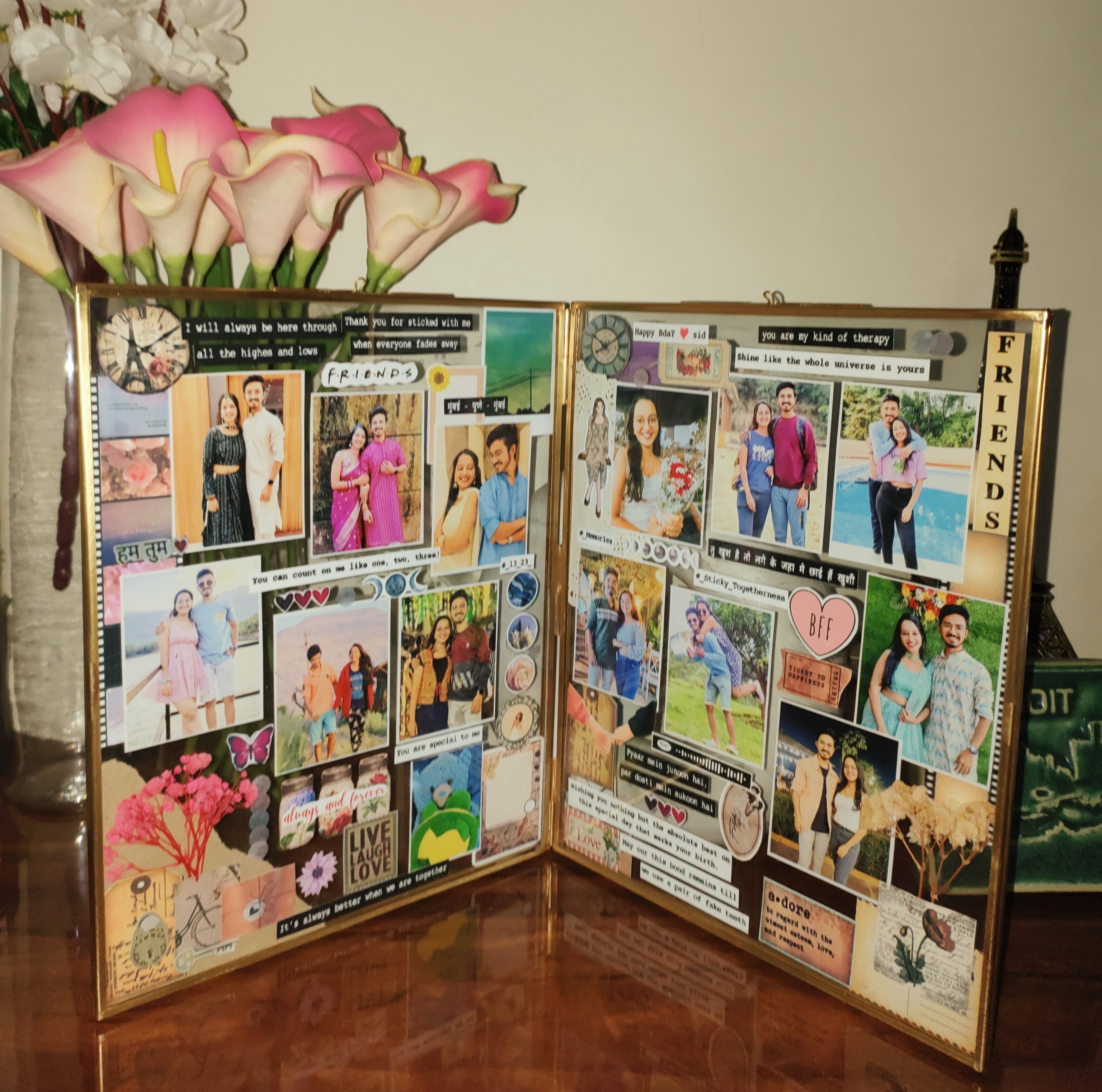 Celebrate the enduring beauty of friendship that knows no bounds with our Distant Bonds DuoView Vintage Frame. Crafted from premium glass and brass, this 8 X 10 inch double-sided frame is a masterpiece in the vintage frame segment. It not only encapsulates the essence of timeless design but also holds the key to treasured memories of friendships that transcend geographical distances.
