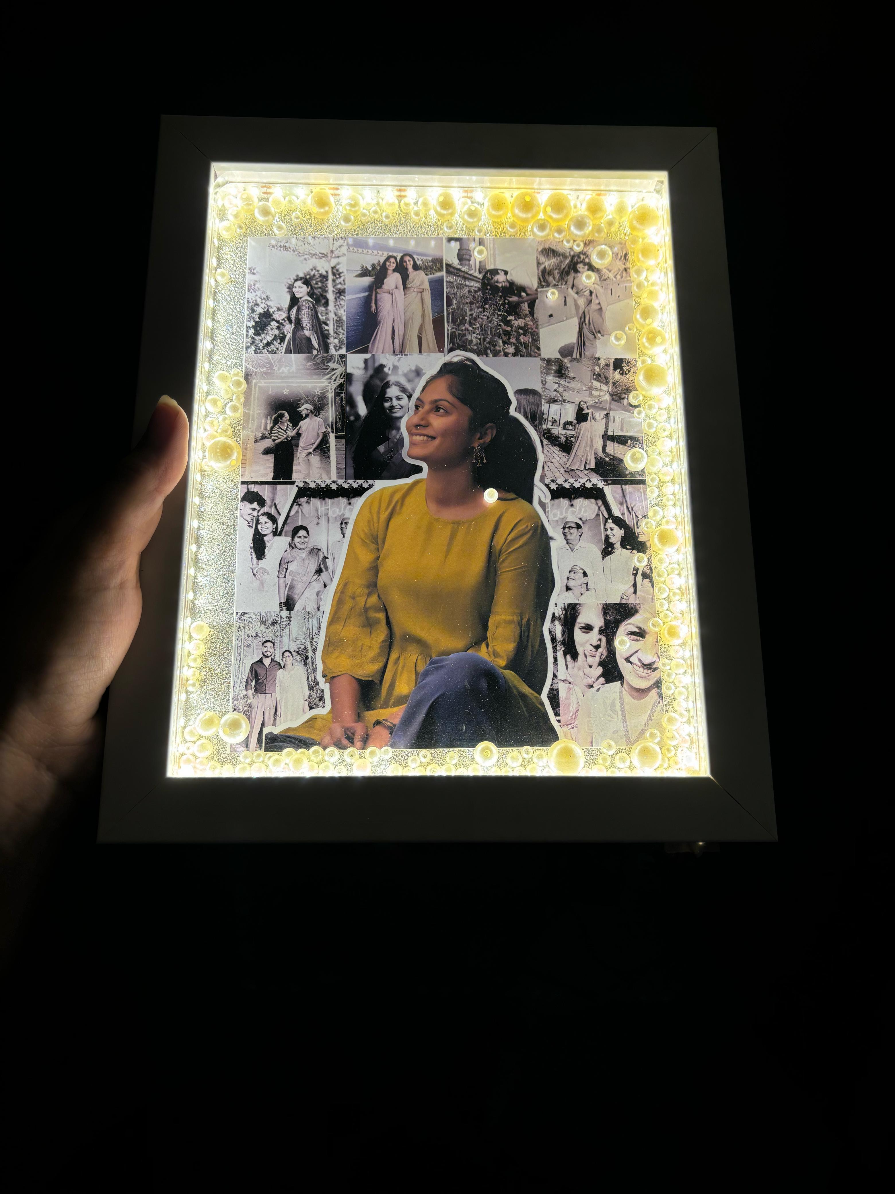 Make your memories shine with our Premium LED Shadow Frame with Pearls — a stunning personalized gift designed to capture emotions in the most elegant way. This handcrafted frame features a custom photo collage, highlighted by soft warm LED lights that create a magical glow in any room. The bottom is adorned with premium pearl embellishments, adding a touch of luxury and sophistication.